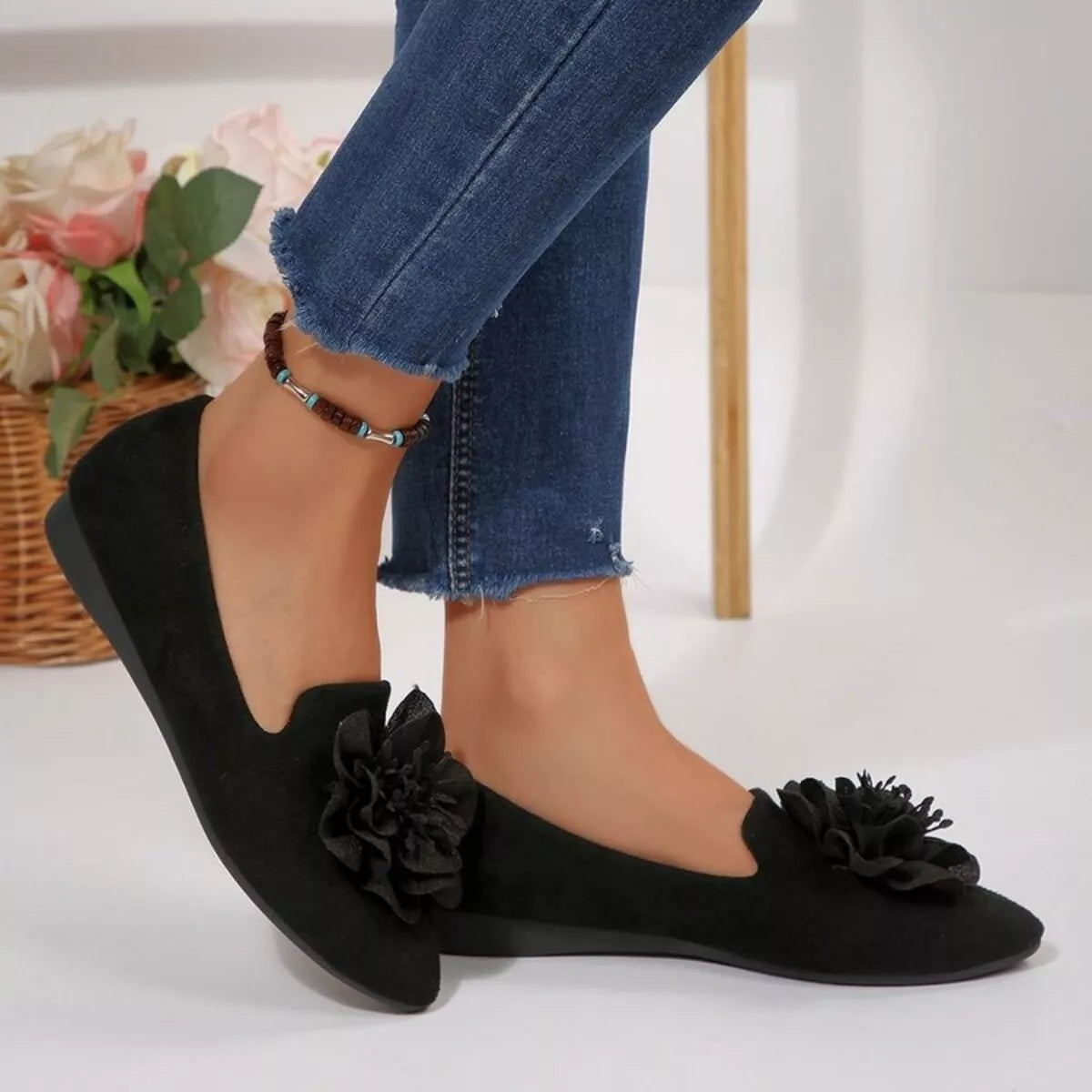 Flower Point Toe Flats Slip-Ons